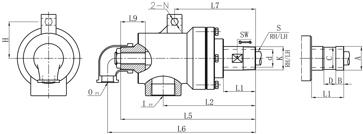 | Model | K | I | O | S | d | L1 | L2 | L5 | L6 | L7 | L9 | N | H | SW | 法蘭式外管尺寸對(duì)照表 | |||
