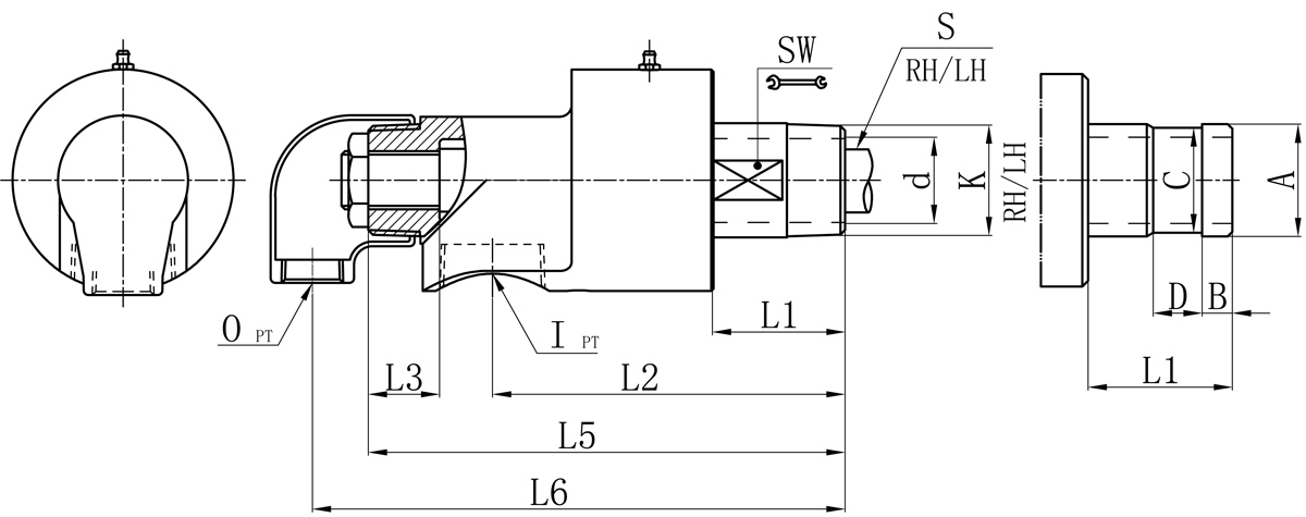 Model K I O S d L1 L2 L3 L5 L6 SW 法蘭式外管尺寸對照表
