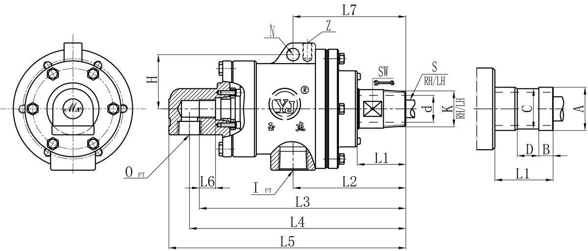 Model K I O S d L1 L2 L3 L4 L5 L6 L7 Z N SW H 法蘭式外管尺寸對照表