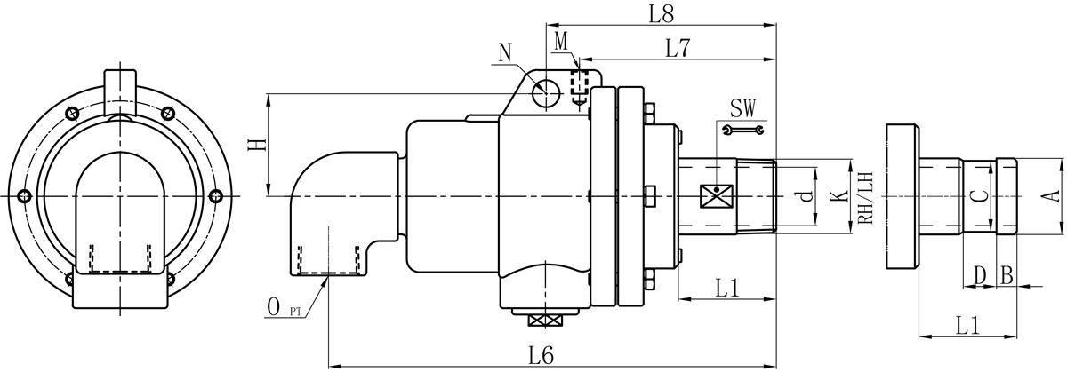 Model K O d L1 L6 L7 L8 M N H SW 法蘭式外管尺寸對照表