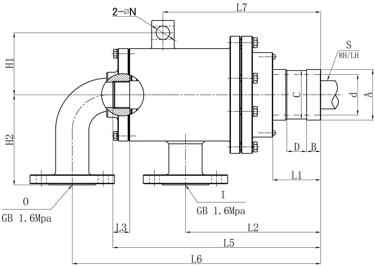 Model I O S d L1 L2 L3 L4 L6 L7 N H1 H2 法蘭式外管尺寸對照表
